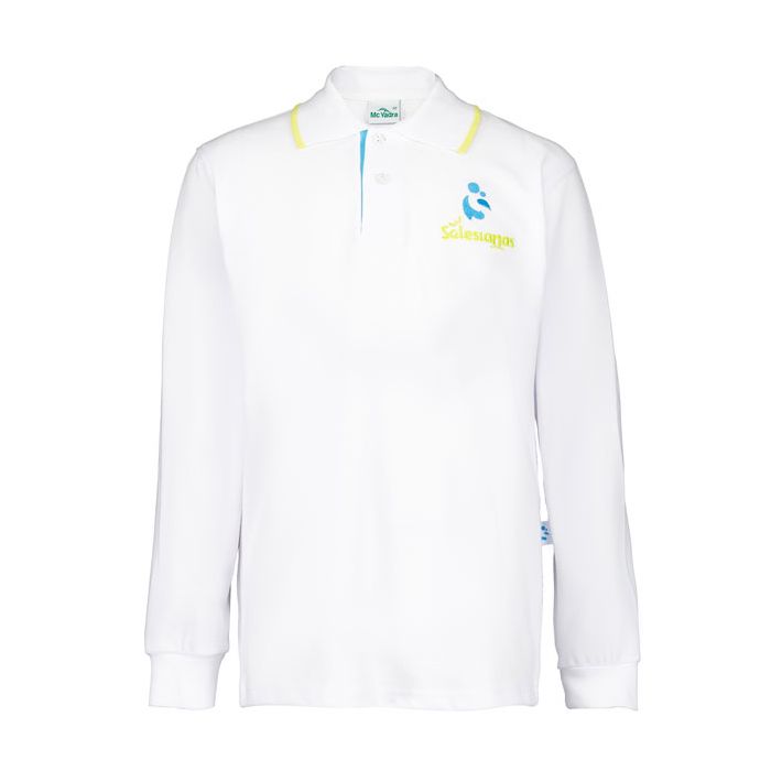 • Polo colegial de manga corta, realizado en pique con tapeta color turquesa.